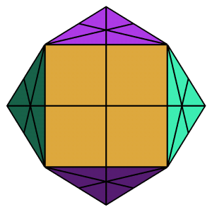The cubeoctahedron can be constructed with two different kinds of generating triangles; see also its alternate.