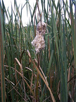 which hang from the plant. This photograph shows the plant's flower, the "cat tail"