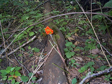 the plant dies away, leaving only the berry-covered stalk, or "spadix," shown here.