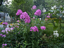 Phlox are common in both gardens and hedgerows. They vary in color fron white to pink to purple and have a delicious fragrance.