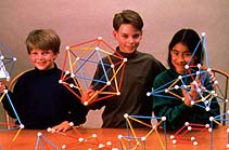 Parts: 25 white nodes, 16 each of 3 lengths blue struts, 10 each